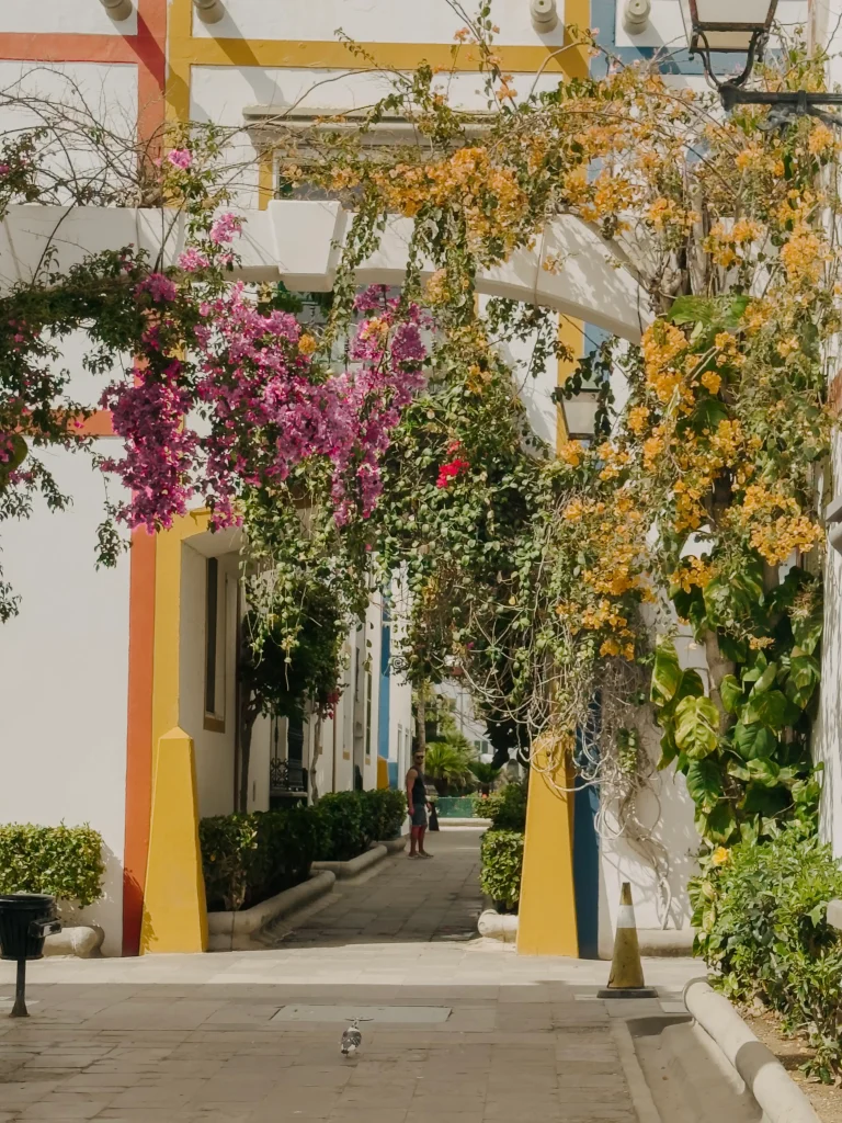 Ogni vicolo sembra curato con una precisione quasi irreale. Non c’è un vaso fuori posto, non c’è un muro che stoni. Puerto de Mogán è uno di quei posti che ti fa domandare se esiste davvero o se lo stai solo sognando.